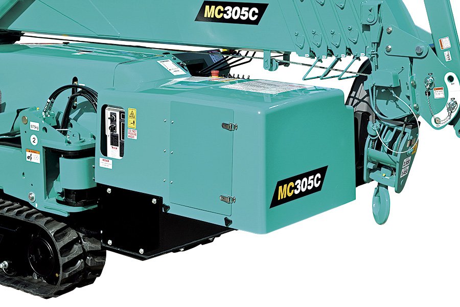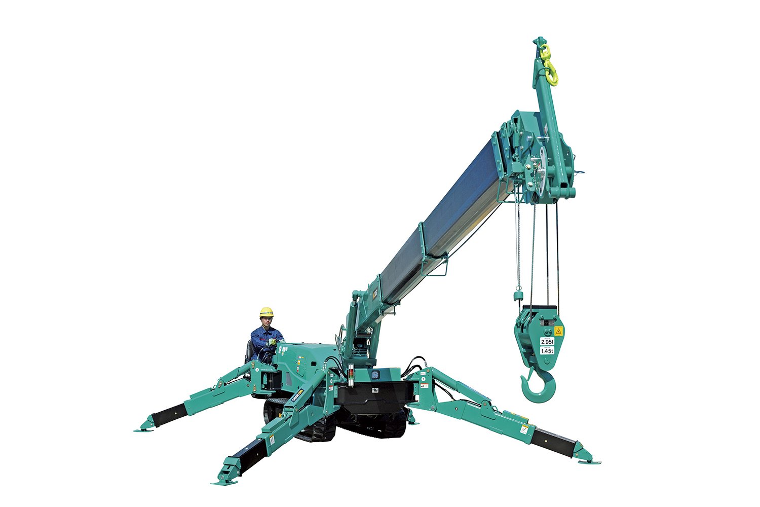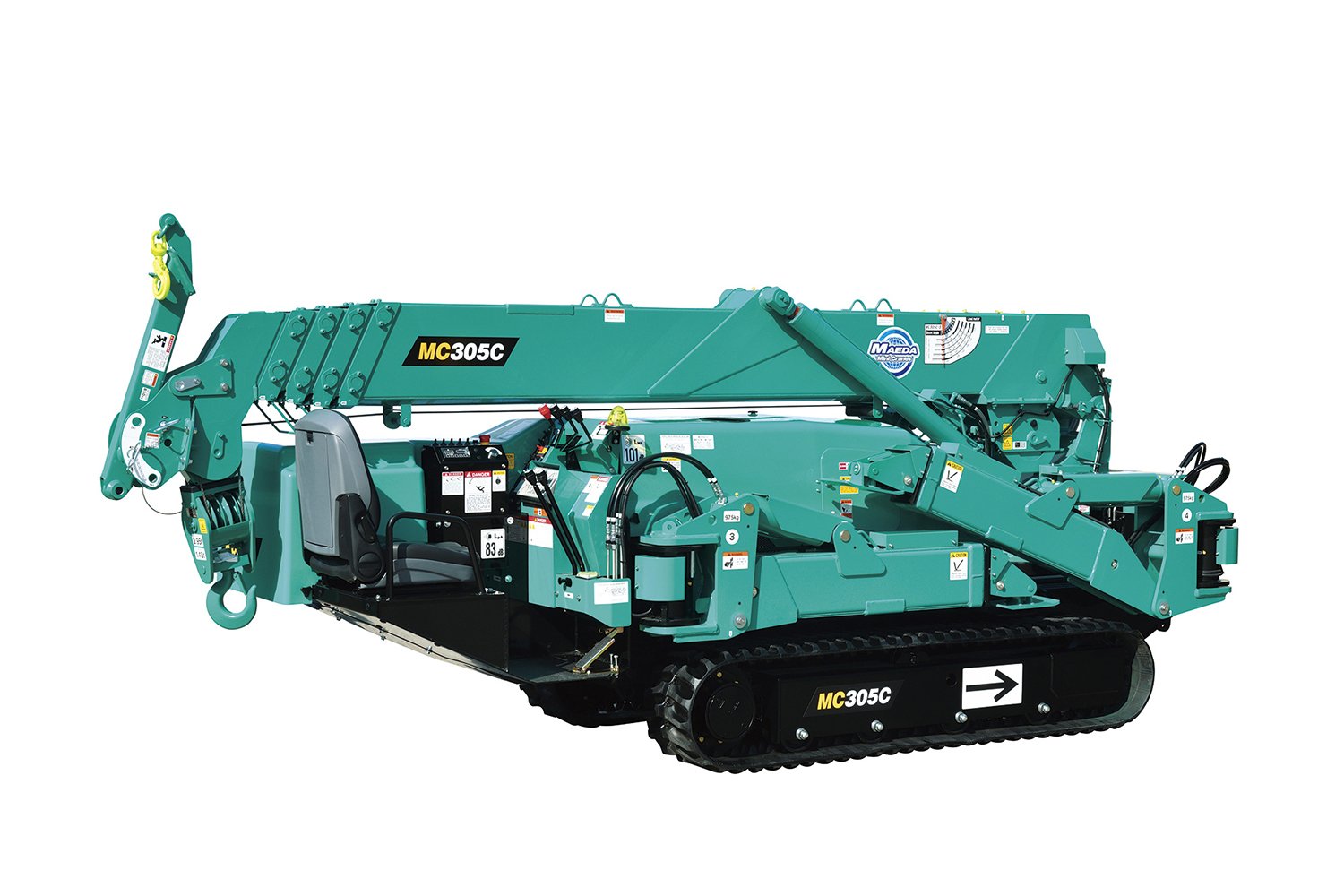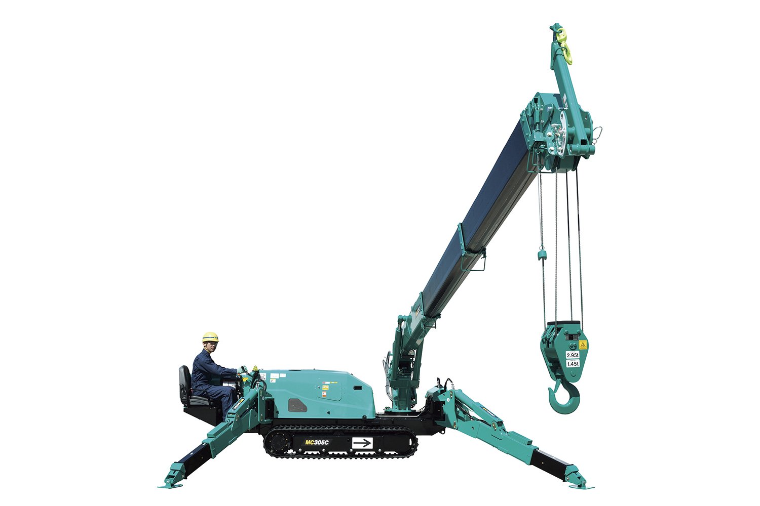 Maeda mini spider cranes are compact and light weight and can be lifted up to a site by larger cranes or service elevators and are easily moved in place on the rubber crawlers.