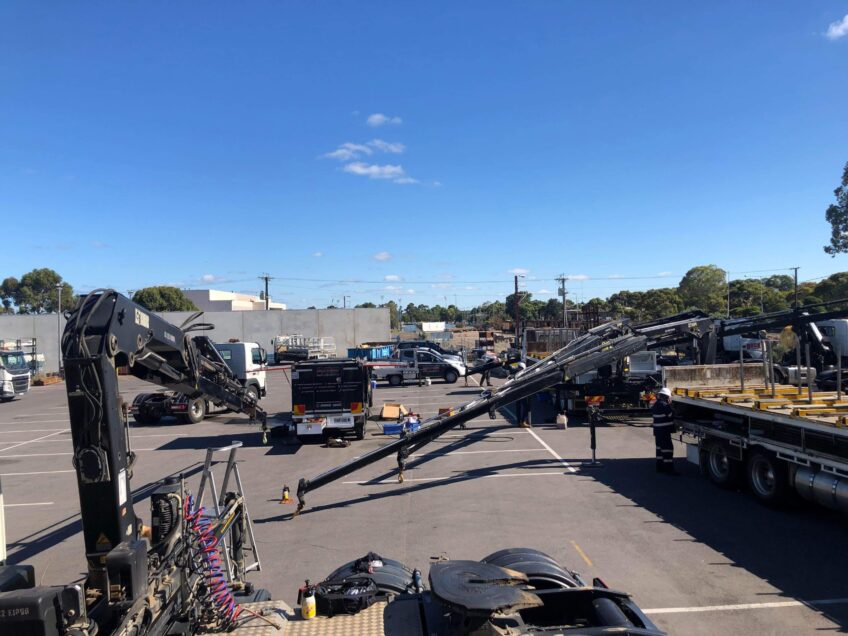 The team at RMB were hard at work again this Saturday! We had everyone on site ranging from Management, Engineering, Fabrication, BD, qualified crane technicians and apprentices. This time supporting our long standing customer, Rock Logistics and their fleet of HIABs. Our qualified and trained HIAB technicians provide the full service, ensuring we are flexible with our clients normal hours of operation.